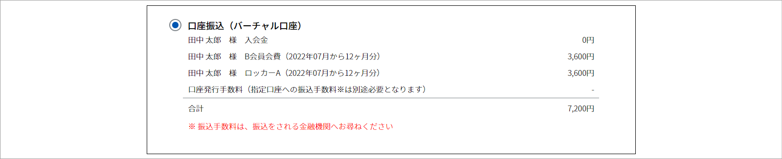 ①『お支払方法選択』画面にて、ラジオボタンより「口座振込(バーチャル口座)」を選択します。