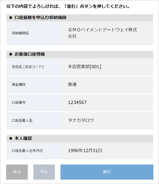 ※画面の入力項目は、各銀行によって異なります。表示されている項目を正しく入力してください。