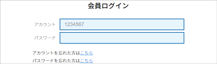 ①『会員ログイン』画面の「アカウントを忘れた方はこちら」をクリックします。
