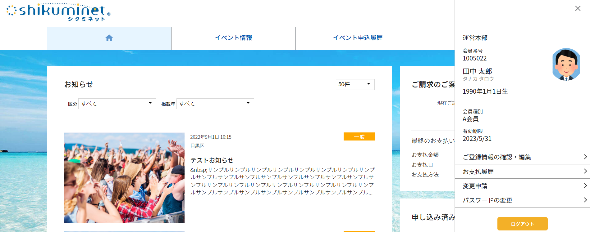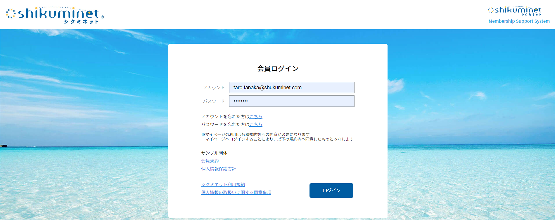 ④正常にログアウトすると、『会員ログイン』画面が表示されます。