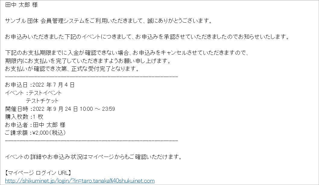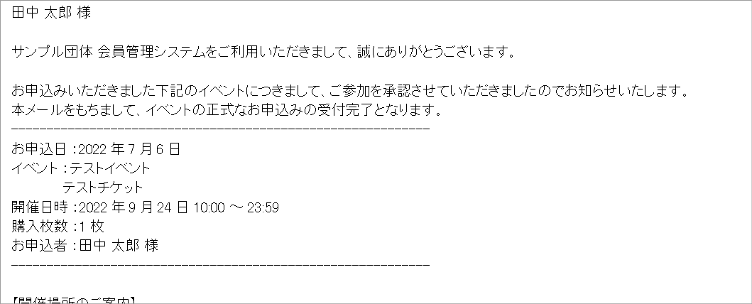 イベント申込申請が承認されると、参加承認メールが送信されます。
