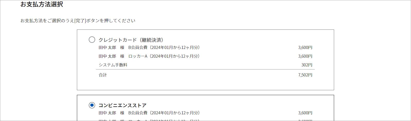 - 会員種別が無料(0円)等で、会費支払いの必要がない場合は表示されません。